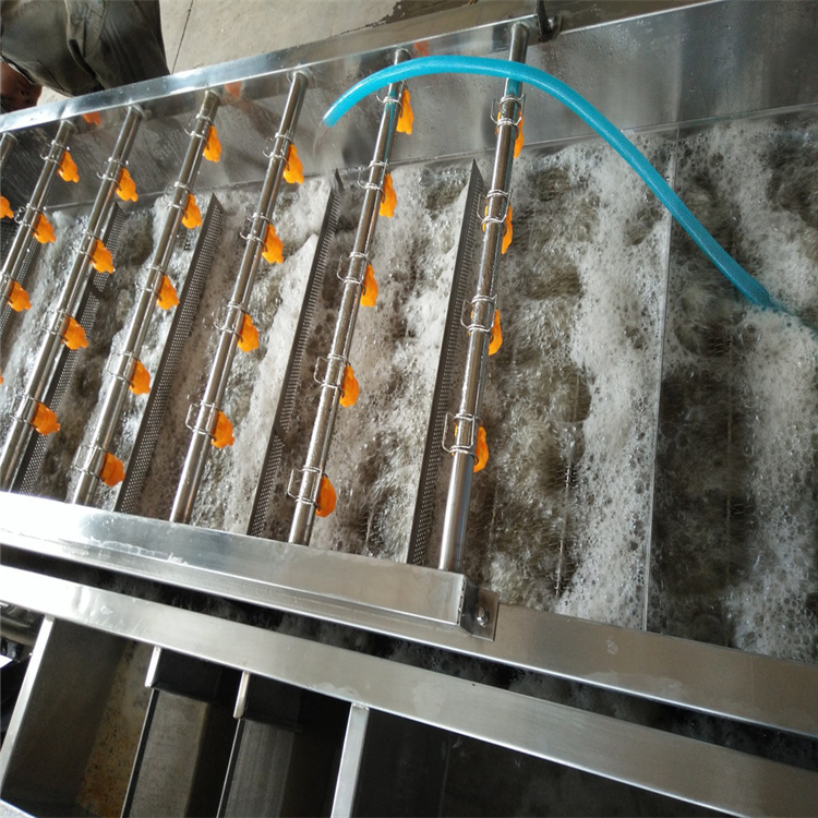 蔬菜清洗機操作方法介紹接觸物料的部分全部采用sus304不銹鋼材料制作,無毒不生銹不會被腐蝕。304材質(zhì)不銹鋼更結(jié)實耐用,長期浸泡在水中也不會生銹,氣泡清洗機在清洗的過程中利用氣泡翻滾技術(shù)讓產(chǎn)品在水中充分清洗,氣泡在與物體接觸時破裂產(chǎn)生的能量,會對被清洗物體表面起到一個沖擊和刷洗的作用。本機配有連續(xù)式提升輸送帶,及時將清洗好的產(chǎn)品從水槽中提升到下一工序,提升的同時自動噴淋會再次沖洗產(chǎn)品。